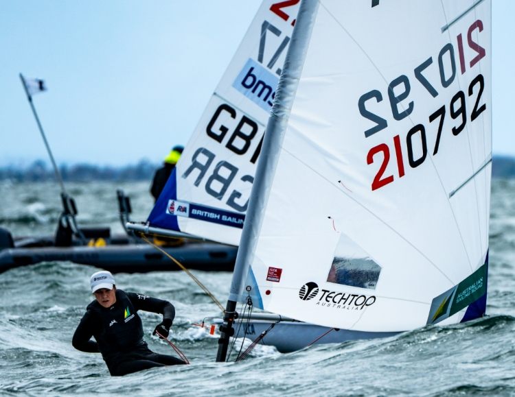In the ILCA 6 the women filled nine of the top ten places with the two Olympians Emma Plasschaert from Belgium and Hungarian Maria Erdi going head to head finishing in that order. Third placed and first Australian was Paris Olympian sailor Zoe Thomson RFBYC from WA. 5th placed Jasper Stay also from RFBYC was the first male and the first U19. First U17 was Jackson Black from RQYS.